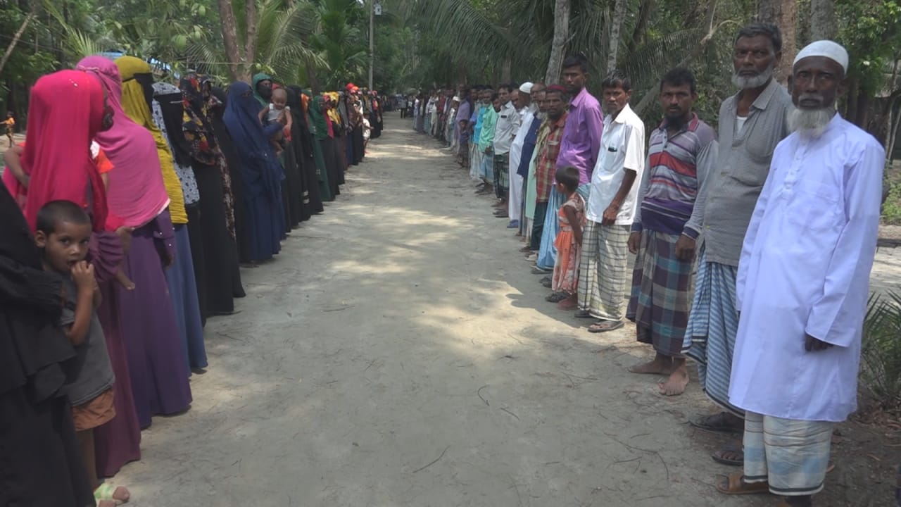 নোয়াখালীর উপকূলীয় উপজেলা সূবর্ণচরে বহিরাগত ভূমিদস্যুদের বিরুদ্ধে ব্যবস্থা নিতে এবং প্রকৃত ভূমিহীনদের জায়গা বন্দোবস্ত দেয়ার দাবীতে মানববন্ধন ও প্রতিবাদ সমাবেশ করেছে অসহায় দরিদ্র সহস্রাধিক ভুক্তভোগী ভূমিহীন পরিবার।