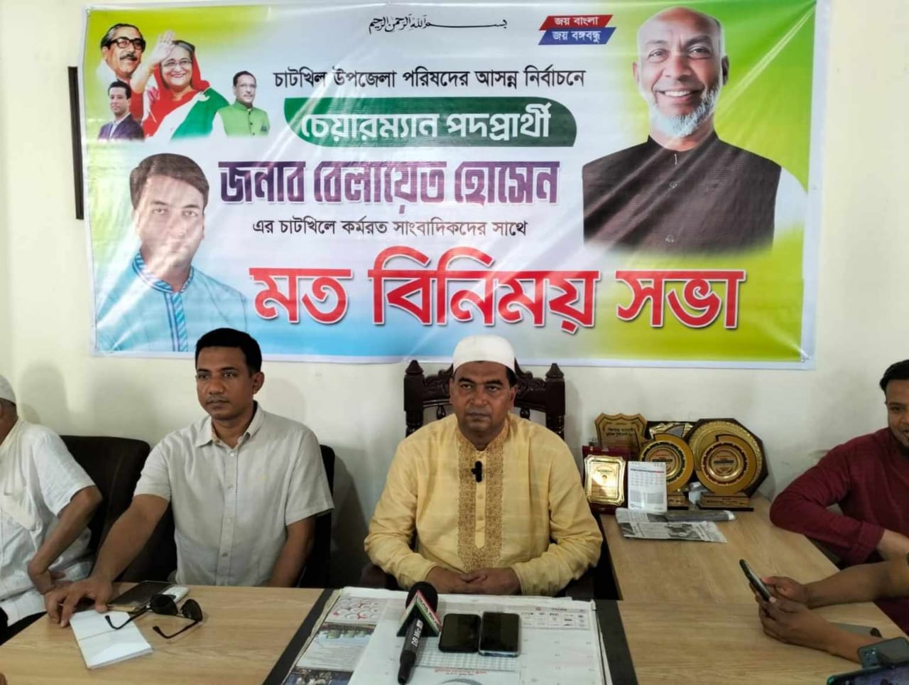 আসন্ন চাটখিল উপজেলা পরিষদের নির্বাচনে চেয়ারম্যান প্রার্থী বেলায়েত হোসেন সাংবাদিকদের সাথে মতবিনিময় করেছেন।