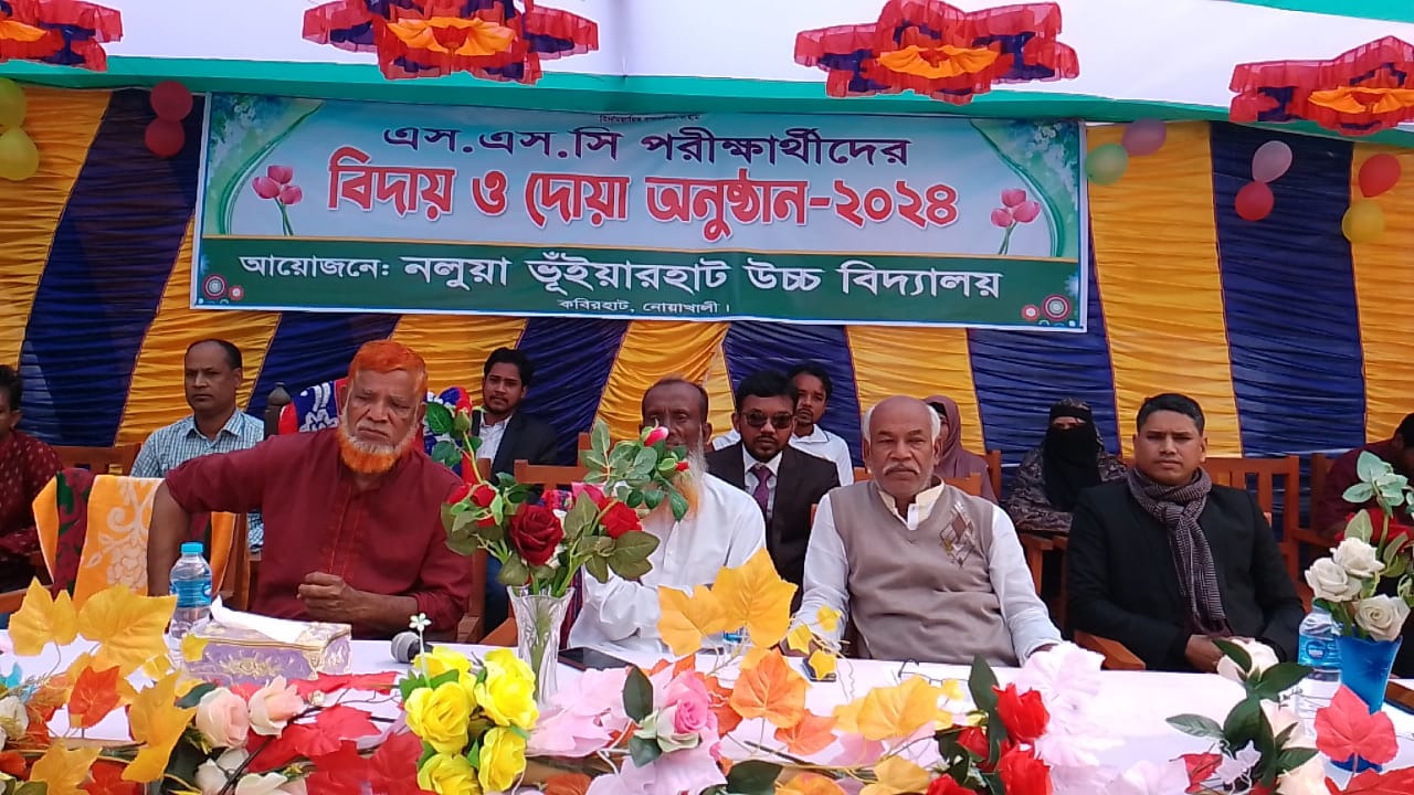 নোয়াখালীর কবিরহাট উপজেলার নলুয়া ভূঁইয়ার উচ্চ বিদ্যালয়ে ২০২৪ সালের এসএসসি পরীক্ষার্থীদের বিদায় ও দোয়ার অনুষ্ঠান অনুষ্ঠিত হয়েছে।