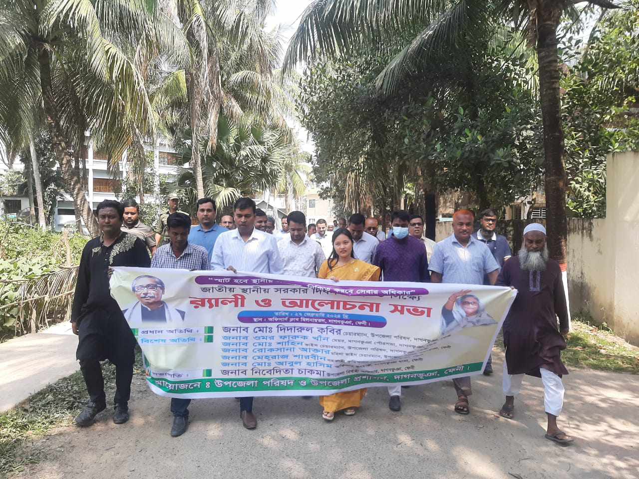 দাগনভূঞা প্রতিনিধি,দৈনিক জনতার অধিকার ডট কমঃ“স্মার্ট হবে স্থানীয় সরকার ,নিশ্চিত করবে সেবার অধিকার” এ প্রতিপাদ্যকে সামনে রেখে দাগনভূঞা উপজেলায় পালিত হলো জাতীয় স্থানীয় সরকার দিবস। উপজেলা পরিষদ ও উপজেলা প্রশাসনের আয়োজনে এ উপলক্ষে মঙ্গলবার সকালে বর্ণাঢ্য র্যালী উপজেলা পরিষদ প্রাঙ্গণ থেকে বের হয়ে বিভিন্ন সড়ক প্রদক্ষিণ করে। র্যালী শেষে উপজেলা অফিসার্স ক্লাব হলরুমে আলোচনা সভা অনুষ্ঠিত হয়।