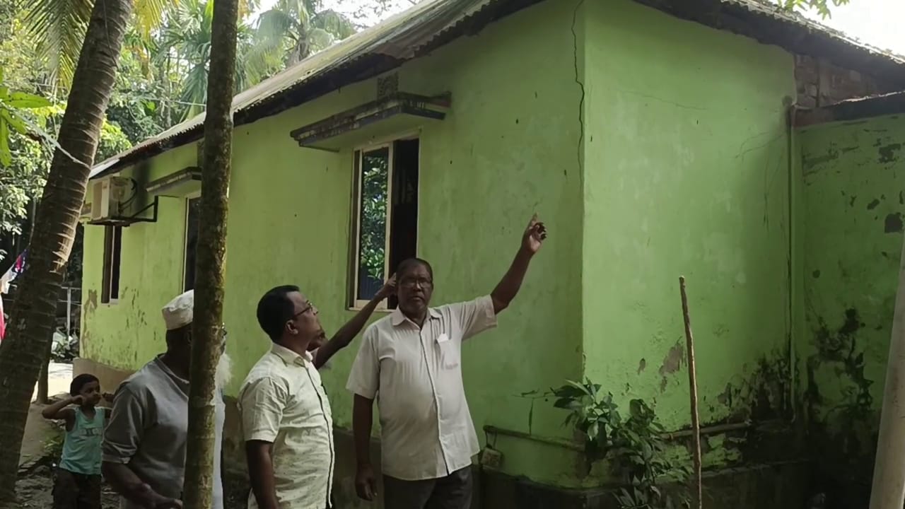 সরেজমিনে দেখা গেছে, উপজেলার এয়াপুর গ্রামের আমিরুল ইসলাম মুন্সির আধাপাকা বসত ঘরের ৩-৪টি স্থানে ফাটল দেখা দিয়েছে। এতে পরিবারের সদস্যদের মধ্যে আতঙ্ক বিরাজ করছে।এ ছাড়াও একই গ্রামের কদম মিয়ার পাড় কেন্দ্রীয় জামে মসজিদের বাহিরে ফাটল দেখা দিয়েছে। একটি পিলারের বেশ কয়েকটি টাইলস খুলে নিচে পড়ে গেছে। ভূকম্পন অনুভূত হলে স্থানীয় বাসিন্দারা ভয়ে মসজিদে আজান দিতে থাকে। এ সময় তারা ভূকম্পন থেকে রক্ষা পেতে আল্লাহ তাআলার কাছে দোয়া করতে থাকে।