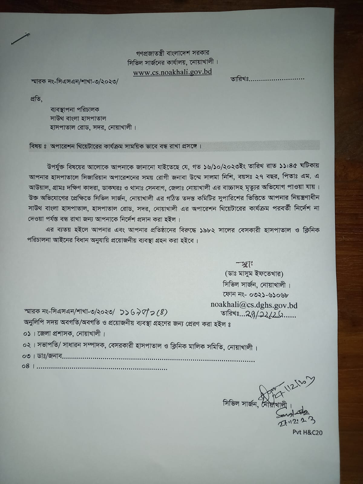 নোয়াখালীতে মা-সহ নবজাতকের মৃত্য, অপারশেন থিয়েটার বন্ধ করল সিভিল সার্জন