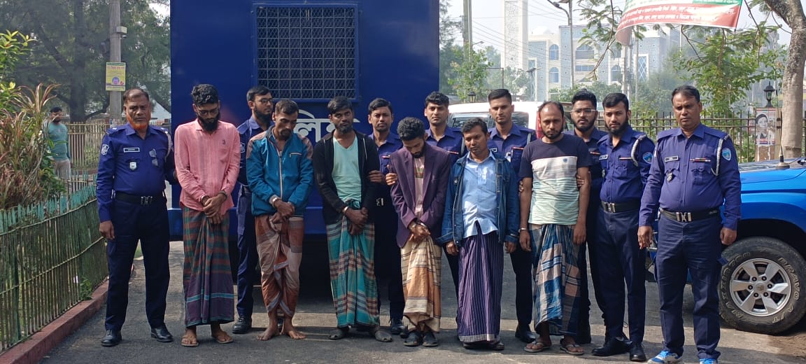 গ্রেপ্তারকৃতরা হলেন,লক্ষীপুরের কমলনগর থানার তোরাবগঞ্জ ইউনিয়নের চরপাগলা গ্রামের মৃত শহীদুল্লার ছেলে মো.নোমান (৩৫) একই জেলার কমলনগর থানার চর মার্টিন ইউনিয়নের পশ্চিম চর মার্টিন গ্রামের মোরশেদ আলমের বাড়ির মো.মোরশেদ আলমের ছেলে মো.সুজন হোসেন (২৭) কমলনগর থানার হাজীরহাট ইউনিয়নের কৃঞ্চপুর গ্রামের ছৈয়াল বাড়ির সুভাষ চন্দ্র সরকারের ছেলে কৃঞ্চ কমল সরকার (৩২) নোয়াখালীর সোনাইমুড়ী উপজেলার নদনা ইউনিয়নের জগজীবনপুর গ্রামের মৃত আব্দুর রহিমের ছেলে মো.শাহাদাত হোসেন (৩২) একই উপজেলার বজরা ইউনিয়নের মুসলিম গ্রামের হাজী বাড়ির মো.সোলেমানের ছেলে মো.সাদ্দাম হোসেন ওরফে জিতু (৩০) বেগমগঞ্জ উপজেলার চৌমুহনী পৌরসভার করিমপুর এলাকার মুন্সি বাড়ির মৃত অলি উল্যার ছেলে সালাউদ্দিন (৩২) কবিরহাট উপজেলার কবিরহাট পৌরসভার ১নম্বর ওয়ার্ডের জৈনদপুর গ্রামের মোশারফ বিএসসির বাড়ির মৃত মো.শহীদুল্লার ছেলে মো.মিজানুর রহমান ওরফে রনি (৩৬)।