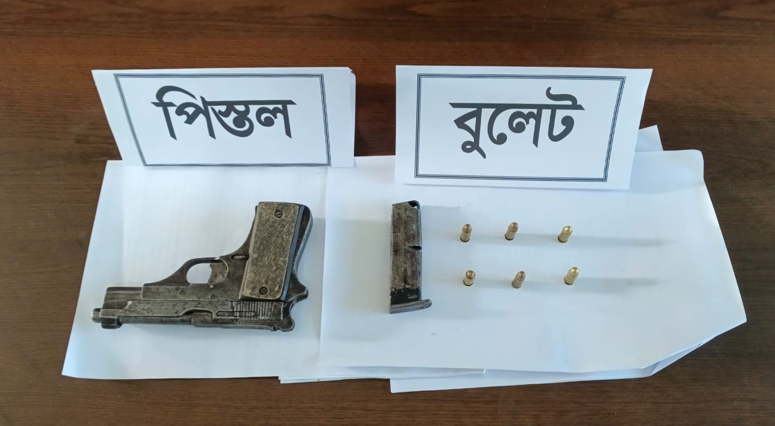 পুলিশ জানায়, সদর উপজেলার পূর্ব চরমটুয়া ইউনিয়নের ৭নম্বর ওয়ার্ডের সুর্যনারায়নবহর গ্রামের মোহাম্মদ হাছান একই এলাকার মো.সোহেল (৩৪) নামে এক ব্যাক্তির মধ্যে টাকা পয়সার লেনদেন ছিল। শুক্রবার বিকেল সোয়া ৪টার দিকে হাসান সোহেলের কাছে পাওনা টাকা চাইলে সোহেল টাকা দিতে বিলম্ব করলে হাসান সোহেলকে লক্ষ্য করে পিস্তল তাক করে। ওই সময় সোহেলের শোরচিৎকারে স্থানীয় লোকজন ধাওয়া করে হাছানকে আটক করে। পরবর্তীতে খবর পেয়ে পুলিশ ঘটনাস্থল থেকে পিস্তল ও ৬ রাউন্ড গুলি জব্দ তালিকা মূলে আসামি আটক করে থানায় নিয়ে আসে।