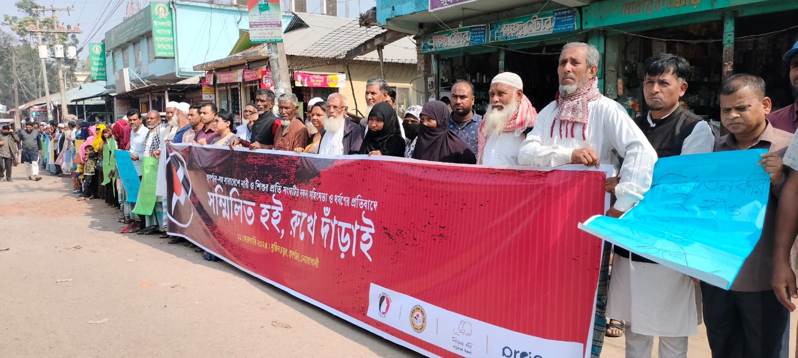 আয়োজনের সঙ্গে একাত্মতা প্রকাশ করে সামিল হয় সাগরিকা সমাজ উন্নয়ন সংস্থা, নিজেরা করি, পার্টিসিপেটরী রিচার্স অ্যান্ড অ্যাকশন নেটওয়ার্ক-প্রান, নোয়াখালী পল্লী উন্নয়ন সংস্থাসহ (এনআরডিএস) স্থানীয় বিভিন্ন সামাজিক সংগঠনের প্রতিনিধিরা। এসব সংগঠন ছাড়া স্থানীয় জনপ্রতিনিধি, মানবাধিকারকর্মী, বিভিন্ন শিক্ষা প্রতিষ্ঠানের প্রতিনিধি, কলেজ পড়ুয়া শিক্ষার্থীরা নারীর প্রতি সহিংসতার বিরুদ্ধে রুখে দাঁড়াতে রাস্তায় নেমে আসেন। তারা এ সময় সেখানে প্রায় ঘন্টা ব্যাপী মানববন্ধন ও প্রতিবাদ সমাবেশ করেন।