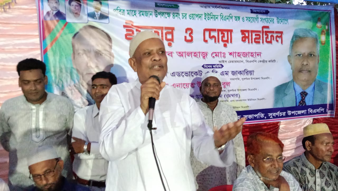 নোয়াখালী সুবর্ণচরে পবিত্র মাহে রমজান উপলক্ষে ৪ নং চর ওয়াপদা ইউনিয়ন বিএনপি, যুবদল, ছাত্রদলসহ বিএনপির অঙ্গ ও সহযোগি সংগঠনের যৌথ উদ্যোগে ইফতার ও দোয়া মাহফিল অনুষ্ঠিত হয়েছে।